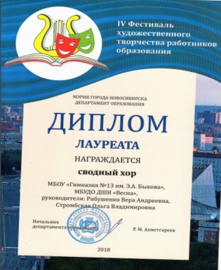 С ноября 2017 года по октябрь 2018 года проходит IV фестиваль художественного творчества работников городской отрасли образования, посвящённый 125-летию Новосибирска.